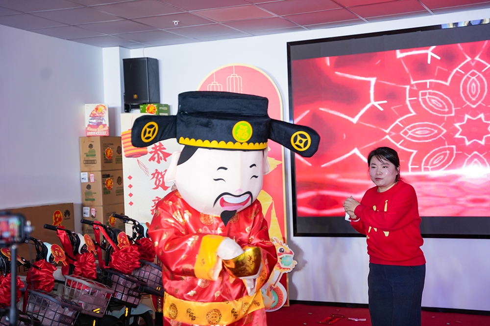 此外,表演《恭喜發(fā)財》也成為了年會上的一大亮點(diǎn)。該節(jié)目不僅表達(dá)了新年祝福的美好寓意,更通過兩位財神扮演者的生動演繹,生動呈現(xiàn)了暴富的象征,贏得了全場觀眾的陣陣掌聲和喝彩聲。