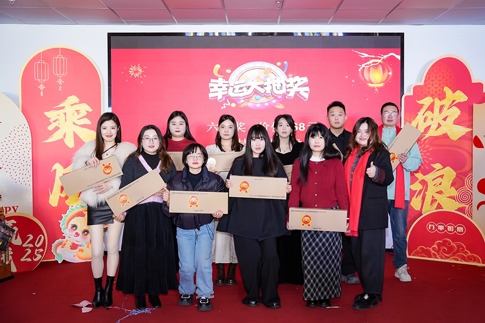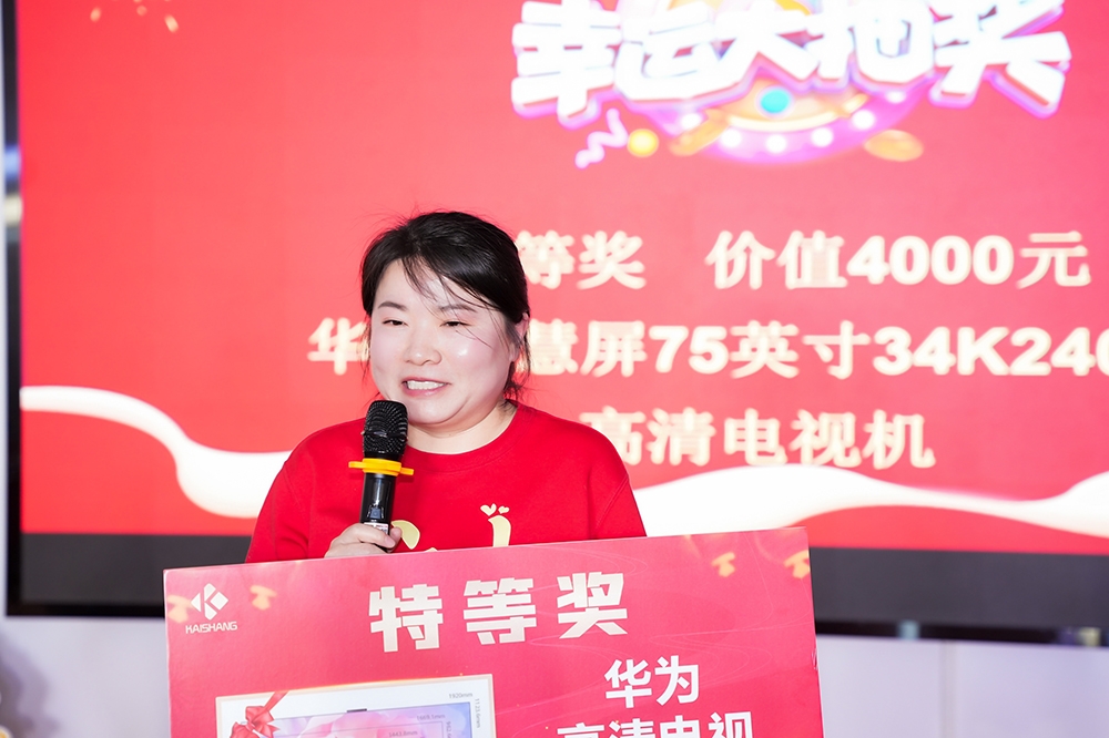 在年會的抽獎環(huán)節(jié)中,眾多精美獎品逐一揭曉。美的除螨儀、惠普投影儀、羅技機(jī)械鍵盤、多功能烤箱、智能洗地機(jī)以及75英寸華為智慧屏等高端獎品逐一被抽出,每位員工都抽到了自己滿意的獎品,臉上洋溢著幸福的笑容。