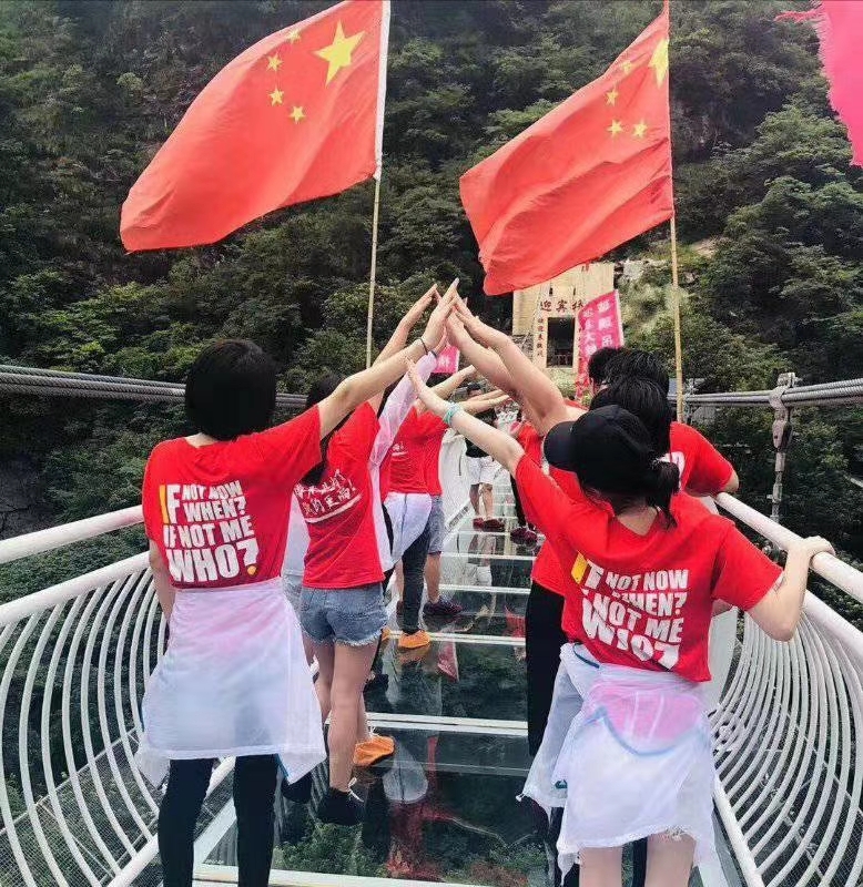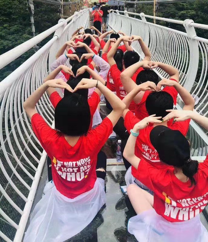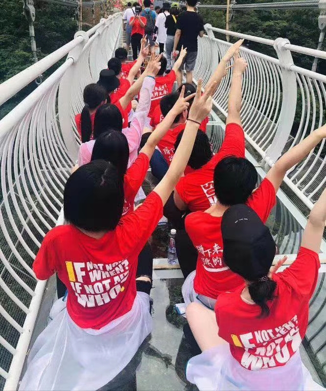 本次是第二批次,第一批次于27日結(jié)束。整個(gè)浙北大峽谷之行,上午是爬山項(xiàng)目,走玻璃棧橋,中午就餐后有拔河比賽,下午是漂流項(xiàng)目。提到爬山,其實(shí)主要的還是體驗(yàn)一下透明玻璃棧橋,一起來(lái)看看大家的風(fēng)采吧。