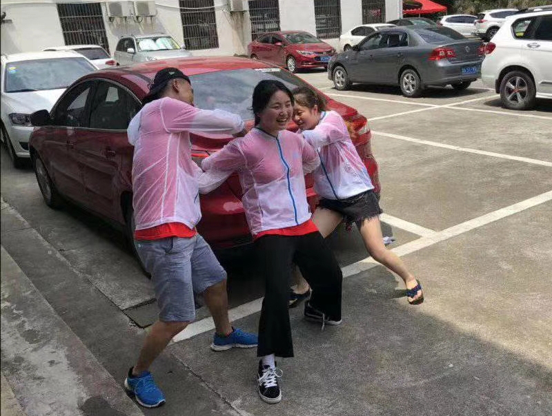 拔河后還有一個(gè)考驗(yàn)大家技巧和團(tuán)結(jié)意識(shí)的小游戲,撕名牌!看看下面的場(chǎng)景,這個(gè)小姐姐是真的慘,還好后面有輛車,不然這節(jié)奏準(zhǔn)備按在地上了~還有漂流項(xiàng)目,因?yàn)樗鲉?wèn)題,照片暫不提供哦,哈哈